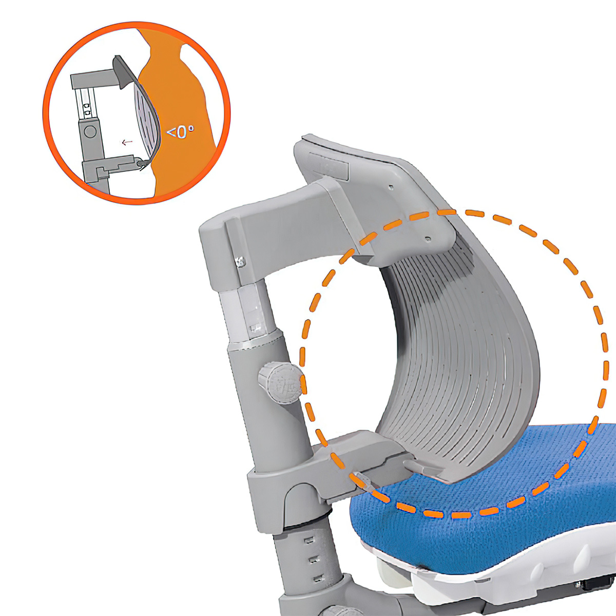 С помощью специального винта можно фиксировать положение спинки кресла (горизонтальная глубина), спинку необходимо настраивать индивидуально, исходя из параметров ребенка. Спинку можно отрегулировать, как для занятий, чтобы ребенок сидел ровно, так и уменьшить изгиб во время отдыха.